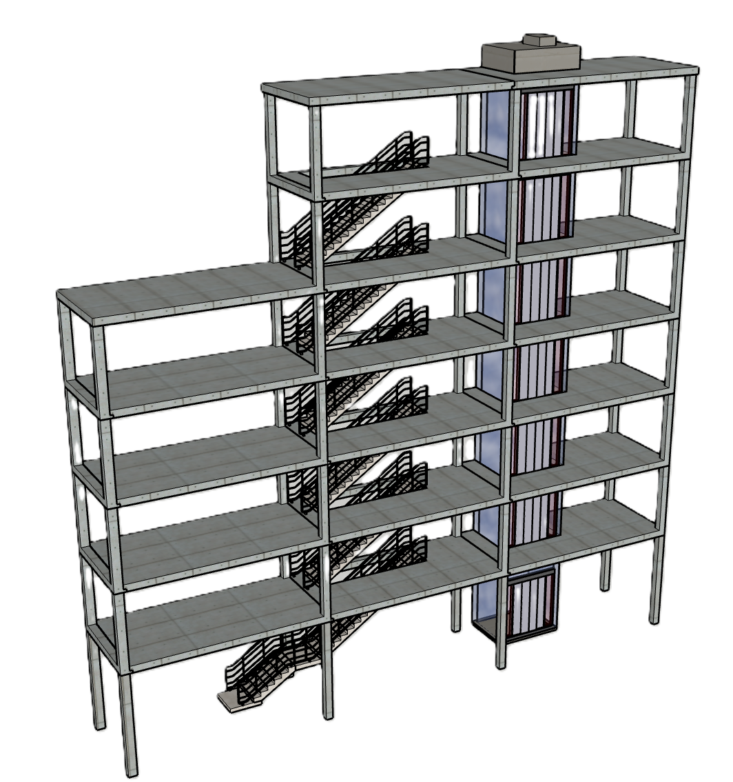 - Treppenhaus und Aufzug